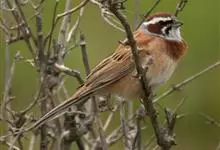 黄眉鹀是雀形目鹀科鹀属鸟类,体型中等偏小。雄鸟头部主要为黑色,冠纹白色,眉纹前段黄色而后段白色,喉白而具黑色细碎纵纹;上体主要为栗褐色,背具黑褐色纵纹;翼主要为黑褐色,…全部>>