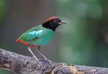 绿胸八色鸫:是雀形目八色鸫科的鸟类,共有12个亚种。体长为16-18厘米,体重65-69克。体型圆胖,尾短,腿长。头黑,上体绿色,两翼深色而具白色斑纹,头顶至后枕深褐,胸及腹部苹果绿,臀亮红。…全部>>
