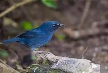 蓝矶鸫是雀形目鸫科矶鸫属鸟类。蓝矶鸫雄鸟通体普蓝色,头顶和背较为辉亮,尾羽和飞羽黑褐色且具灰蓝色边缘;虹膜暗褐色,像和脚黑色。雌鸟额、头顶至整个上体暗灰蓝色,隐隐具有黑褐色横斑,背部横斑较为明显,…全部>>