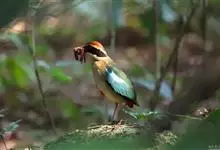 栗头八色鸫又叫锅巴雀,体长为24-26厘米,体重100-135克,是雀形目八色鸫科的鸟类。体型圆胖,尾短,腿长,常在森林底层或低植被中找食无脊椎动物。叫声简单哀婉。…全部>>