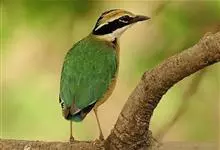 仙八色鸫是雀形目八色鸫科八色鸫属鸟类。雄鸟前额至枕部深栗色,有黑色中央冠纹,眉纹淡黄,背、肩及内侧飞羽辉绿色,飞羽黑色具白翼斑,颏黑褐、喉白,下体淡黄褐色、腹中及尾下覆羽朱红色。雌鸟羽色似雄鸟但较浅淡。…全部>>