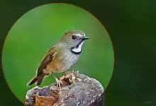 白喉姬鹟:体长11-13厘米,是一种体型小的橄榄褐色鹟。特征为颏及喉白色且成胸兜,缘以黑色的髭纹及项纹。上体红褐色,前额和一相连的短的眉纹白色,眼先、耳覆羽和头侧灰褐色而杂白色,颏、喉白色,…全部>>