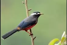 白颊噪鹛是雀形目噪鹛科噪鹛属鸟类,又称土画眉、小画眉、小噪鹃。成鸟额至头顶栗褐色,长眉纹、眼先和颊纹棕白色,眼后至耳羽深褐色,…全部>>
