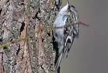 旋木雀是旋木雀科旋木雀属的一种动物。小型鸟类,体长12~15厘米,平均重10克。嘴长而下曲,上体棕褐色具白色纵纹,腰和尾上覆羽红棕色,尾黑褐色,外翈羽缘淡棕色,翅黑褐色,翅上覆羽羽端棕白色,…全部>>