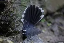 白喉扇尾鹟:是鸟纲、扇尾鹟科的小型鸟类,体重9-14克,体长151-202毫米。通体黑灰色,头部较暗近黑色,颏、喉、眉纹白色,在暗色的头部极为醒目。下体深灰而有别于白眉扇尾鹟,但有个别个体下体色浅。…全部>>