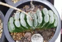条纹十二卷 Haw.)是芦荟科十二卷属植物,为多年生肉质草本植物。植株高度10-15厘米,其呈莲座状生长;叶片紧密轮生在茎轴上,柔软多汁,呈长三角状披针形,极肥厚;叶面光滑、扁平,色深绿;叶背突起,…全部>>
