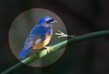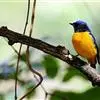 棕腹大仙鹟:体重24-28克,体长15-17厘米,是一种小型的色彩亮丽的鹟。雄鸟上体深蓝,下体棕色,脸黑,额、颈侧小块斑、翼角及腰部亮丽闪辉蓝色。与棕腹仙鹟易混淆,区别在色彩较暗。雌鸟灰褐,…全部>>