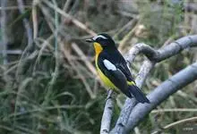 白眉姬鹟是小型鸟类,体长11-14厘米。雄鸟上体大部黑色,眉纹白色,在黑色的头上极为醒目。腰鲜黄色,两翅和尾黑色,翅上具白斑。下体鲜黄色。雌鸟上体大部橄榄绿色。腰鲜黄色,翅上亦具白斑。下体淡黄绿色。…全部>>