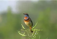 蓝点颏亦称“蓝喉歌鸲”,通称蓝靛颏儿。身体大小和麻雀相似,体长12-13厘米,体重17-18克。头部、上体主要为土褐色。眉纹白色。尾羽黑褐色,基部栗红色。颏部、喉部辉蓝色,下面有黑色横纹。下体白色。…全部>>