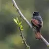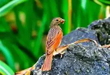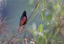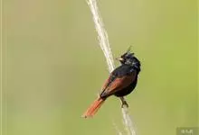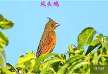 凤头鹀:属小型鸣禽,体重21-31克,体长134-175毫米。以头顶的细长羽冠为特征,雄鸟全身几乎均为黑色具蓝色光泽,两翅和尾以及尾上覆羽栗红色。雌鸟具短的褐色羽冠,上体暗橄榄褐色,…全部>>