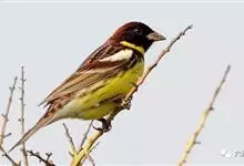 栗斑腹鹀:属小型鸣禽。体重19-25克,体长145-167毫米。头顶至背栗红色,眼先和颧纹黑褐色,黑色颧纹上还有一白纹,耳羽褐色或灰褐色,眉纹白色或灰白色。背、肩具黑色纵纹,腰至尾上覆羽砖红色无纵纹,…全部>>