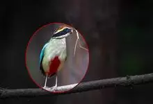 栗头八色鸫又叫锅巴雀,体长为24-26厘米,体重100-135克,是雀形目八色鸫科的鸟类。体型圆胖,尾短,腿长,常在森林底层或低植被中找食无脊椎动物。叫声简单哀婉。…全部>>