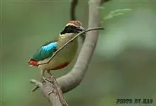 绿胸八色鸫:是雀形目八色鸫科的鸟类,共有12个亚种。体长为16-18厘米,体重65-69克。体型圆胖,尾短,腿长。头黑,上体绿色,两翼深色而具白色斑纹,头顶至后枕深褐,胸及腹部苹果绿,臀亮红。…全部>>