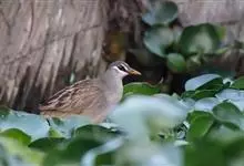 白眉田鸡是鹤形目秧鸡科的鸟类,小型涉禽,体长约20厘米。是一种灰褐色秧鸡。嘴短,头部斑纹明显,上体橄榄褐色,具黑色斑点。头两侧至胸灰色,有橄榄褐色穿眼纹,其上方有一白色眉纹,下方也有一白色斑纹,…全部>>