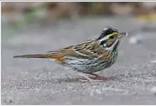 黄眉鹀是雀形目鹀科鹀属鸟类,体型中等偏小。雄鸟头部主要为黑色,冠纹白色,眉纹前段黄色而后段白色,喉白而具黑色细碎纵纹;上体主要为栗褐色,背具黑褐色纵纹;翼主要为黑褐色,…全部>>