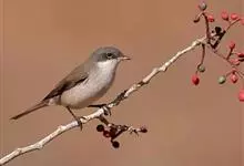 白喉林莺:体长10-13厘米,是一种类体型略小的莺鸟。喉白,上体灰褐或沙褐色,头顶较灰,贯眼纹黑褐或暗褐色。下体污白。耳羽深黑灰,胸侧及两胁沾皮黄色、褐色或淡粉红色。外侧尾羽羽缘白色。…全部>>
