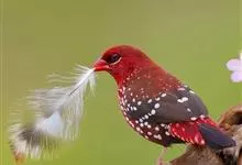 红梅花雀小型鸟类,体长9-10厘米。雄鸟通体朱红色,背、肩、胸等满布白色小斑点,两翅和尾黑褐色均具白色端斑,嘴红色,脚蜡黄色。雌鸟上体淡褐色或赭褐色,翅上中覆羽、大覆羽和内侧飞羽末端具白色斑点,…全部>>