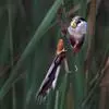 点胸鸦雀是莺科、鸦雀属小型鸟类,体长18-21厘米。头顶至枕橙棕色,嘴橙黄色、短而粗厚,脸皮黄色,耳覆羽和颊后部黑色,眼圈白色。上体棕褐色。颏黑色,其余下体淡皮黄白色,喉和上胸具黑色矢状斑。…全部>>