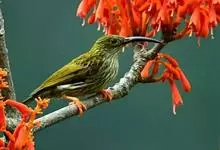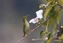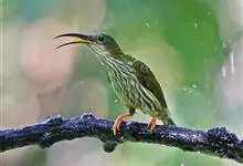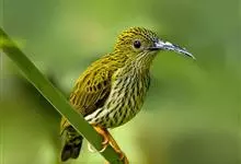 纹背捕蛛鸟:为太阳鸟科捕蛛鸟属的鸟类。是太阳鸟科中体型较大的一种,体重25-45克,体长160-210毫米。嘴粗长而尖且向下弯曲。上体橄榄黄色具黑色中央斑纹。下体淡黄白色满布黑色纵纹,尾具黑色次端斑。…全部>>