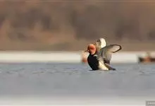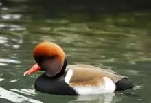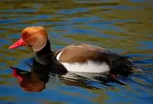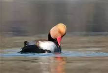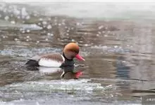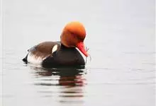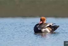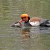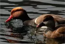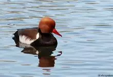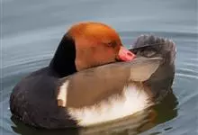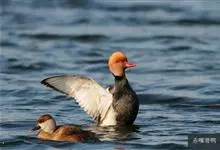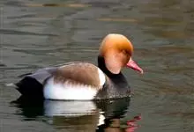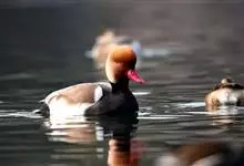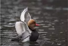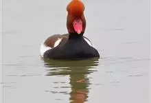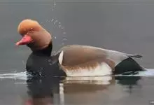 赤嘴潜鸭俗称大红头,是大型鸭类,个体比绿头鸭小,体长45-55厘米,体重1千克左右。雄鸟头浓栗色,具淡棕黄色羽冠。上体暗褐色,翼镜白色,嘴赤红色。下体黑色,两胁白色,特征极明显,野外容易辨别。…全部>>