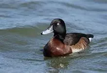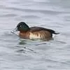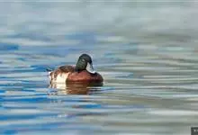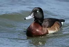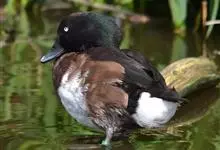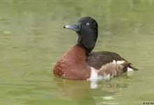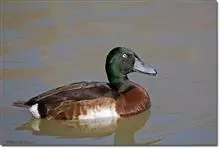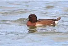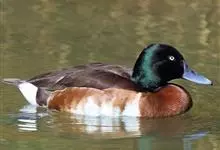 白眼潜鸭属中型潜鸭,个体比红头潜鸭小,和凤头潜鸭差不多。体长33-43厘米,体重0.5千克以上不到1千克。雄鸟头、颈、胸暗栗色,颈基部有一不明显的黑褐色领环;眼白色,上体暗褐色,上腹和尾下覆羽白色,…全部>>