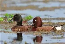 青头潜鸭,是雁形目鸭科潜鸭属的迁徙性鸟类。雄性头部和颈部为黑色,有绿色光泽,上体为黑褐色,尾下和翼下覆羽为白色。雌性头部和颈部为黑褐色,腹部以白色羽毛为主,两翅、腰和尾上尾下覆羽与雄性基本相同。…全部>>