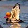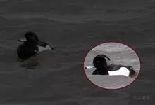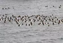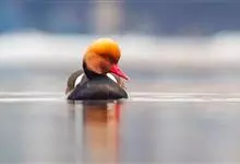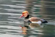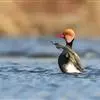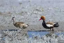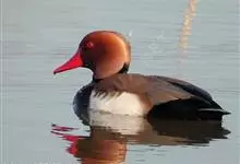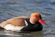 赤嘴潜鸭俗称大红头,是大型鸭类,个体比绿头鸭小,体长45-55厘米,体重1千克左右。雄鸟头浓栗色,具淡棕黄色羽冠。上体暗褐色,翼镜白色,嘴赤红色。下体黑色,两胁白色,特征极明显,野外容易辨别。…全部>>
