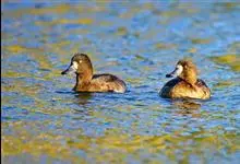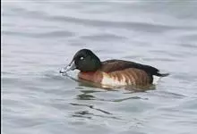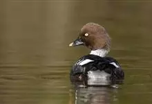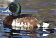 白眼潜鸭属中型潜鸭,个体比红头潜鸭小,和凤头潜鸭差不多。体长33-43厘米,体重0.5千克以上不到1千克。雄鸟头、颈、胸暗栗色,颈基部有一不明显的黑褐色领环;眼白色,上体暗褐色,上腹和尾下覆羽白色,…全部>>