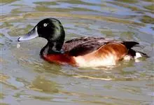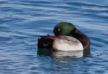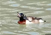 青头潜鸭,是雁形目鸭科潜鸭属的迁徙性鸟类。雄性头部和颈部为黑色,有绿色光泽,上体为黑褐色,尾下和翼下覆羽为白色。雌性头部和颈部为黑褐色,腹部以白色羽毛为主,两翅、腰和尾上尾下覆羽与雄性基本相同。…全部>>