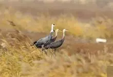 白头鹤,是鹤形目鹤科鹤属动物。白头鹤为大中型涉禽,体形较丹顶鹤小,体长90~97厘米,除头部和颈的上部为白色外,其余各部羽毛均为灰色;眼先至额部为黑色,头顶上的皮肤裸露无羽毛,呈鲜红色、虹膜深褐色,…全部>>