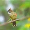 白喉冠鹎:体长20-25厘米。头顶红褐色,有长而细的羽冠、红褐色,头侧灰色。上体橄榄绿黄色,飞羽暗褐色,外翈茶黄色,尾下覆羽皮黄色。…全部>>