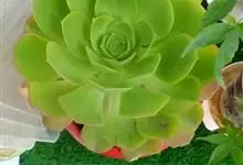 红缘莲花掌属蔷薇目、景天科植物,原产大西洋的加那利群岛。质厚,蓝绿色,被白霜,叶缘红褐色。聚伞花序,花浅黄色,有时带红晕。叶形叶色较美,有一定的观赏价值,多盆栽用于点缀室内;可放置于电视、电脑旁,…全部>>