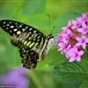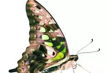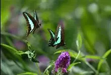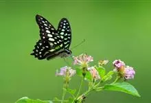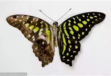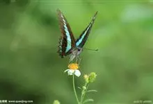 青带凤蝶Graphium sarpedon ,又名青凤蝶,是最普遍的中型凤蝶,飞行速度很快。青带凤蝶的翅膀中央有许多浅蓝色的斑点,很整齐地排列成一条直线。这些斑点由上而下逐渐变大,就像一条青色的带子。全部>>