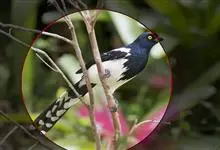 斑背燕尾是鹟科、燕尾属中型鸟类,体长24-25厘米。额至头顶前部白色,其余头、颏、喉、胸黑色,后颈有一白领,背黑色具圆形白色斑点,腰白色,两翅黑色具白色翅斑,尾呈深叉状,黑色、具白色端斑。…全部>>