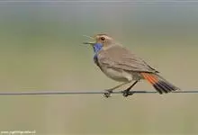 蓝点颏亦称“蓝喉歌鸲”,通称蓝靛颏儿。身体大小和麻雀相似,体长12-13厘米,体重17-18克。头部、上体主要为土褐色。眉纹白色。尾羽黑褐色,基部栗红色。颏部、喉部辉蓝色,下面有黑色横纹。下体白色。…全部>>