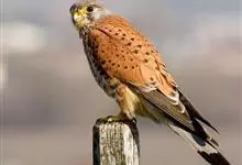 红隼:是隼科、隼属的小型猛禽之一。体重173-335克,体长305-360毫米。翅狭长而尖,尾亦较长,外形和共同爪隼非常相似。雄鸟头蓝灰色,背和翅上覆羽砖红色,具三角形黑斑;腰、尾上覆羽和尾羽蓝灰色,…全部>>