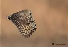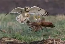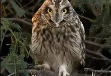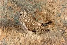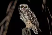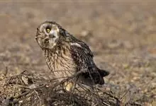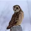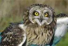 短耳鸮又名小耳木兔、田猫王、夜猫子等,是鸮形目鸱鸮科耳鸮属中小型猛禽动物。成鸟面盘显著,眼周黑色;眼先及内侧眉纹灰白色,面盘余部棕黄色杂以黑色细羽干纹;耳簇羽短小而几乎不外露,…全部>>