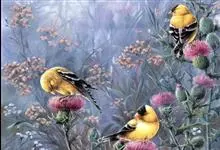 金翅雀:是雀形目雀科金翅雀属的小型鸟类。体长12-14厘米。嘴细直而尖,基部粗厚,头顶暗灰色。背栗褐色具暗色羽干纹,腰金黄色,尾下覆羽和尾基金黄色,翅上翅下都有一块大的金黄色块斑,…全部>>