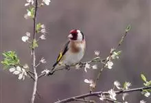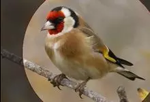 红额金翅雀:共有14个亚种。小型鸟类,体长12-14厘米。额、脸颊和颏朱红色,眼先和眼周黑色,在淡色的头部极为醒目。上体灰褐或乌褐色,尾上覆羽白色,两翅和尾黑色,翅上有黄色斑。下体喉、胸灰褐或乌褐色…全部>>