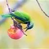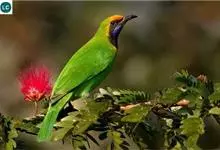 蓝翅叶鹎:小型鸟类,体长15-18厘米。雄鸟通体草绿色,尾蓝绿色,肩和翅亮蓝 色,胸缀有黄色,颏、喉黑色。雌鸟颏,喉蓝绿色。栖息在海拔1500米以下的常绿阔叶林、次生林和林缘疏林灌丛中。…全部>>