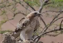 短趾雕:体长62-70厘米,体重1.2-2.3千克。它们的颔、颈和胸部上方呈浅棕色。头部浑圆像猫头鹰般,眼睛呈鲜黄色。身体沉重,上体灰褐,下体白而具深色纵纹,喉及胸单一褐色,腹部具不明显的横斑,…全部>>