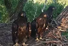 金雕:属于鹰科、雕属的猛禽。体长76-102厘米,翼展达2.3米,体重2-6.5千克。雌雄同色。未成年时,头、颈黄棕色;两翼飞羽除了最外侧三枚外基部均缀有白色,其余身体部分暗褐色;羽尾灰白色,…全部>>