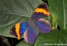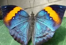 枯叶蛱蝶,又名木叶蝶、树叶蝶等,属于蛱蝶科。翅正面黑褐色,具深蓝色光泽,前翅顶角尖出,顶区有1枚小白点,中部有1条倾斜的橙色斑带,从前缘延伸至Cu室外缘,u室中部有1枚黑色圆斑,…全部>>
