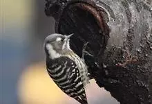 三趾啄木鸟,是啄木鸟科、啄木鸟属的小型鸟类,体长20-23厘米,雄鸟头顶金黄色,雌鸟黑色而具白色斑点。眼至耳覆羽黑色,眼后有一条白色纵纹,颊纹白色,颚纹黑色,甚为醒目。枕和后颈黑色,…全部>>