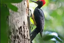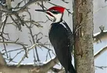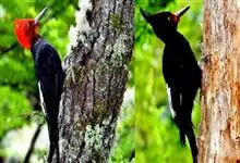 白腹黑啄木鸟,是啄木鸟科、黑啄木鸟属的中型鸟类,体长43-46厘米,头顶具长的红色羽冠,颚纹亦为红色,其余头、颈、胸和上体黑色,腰和腹白色,飞翔时白色腋羽和翅下覆羽亦明显可见。雌鸟头顶黑色,…全部>>