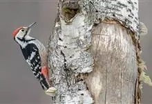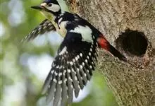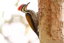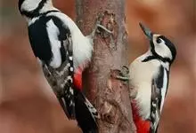 白背啄木鸟共有10个亚种。中等体型,体长25厘米。特征为下背白色,无论雌雄均臀部红色。脚强健,有趾4个,其中2个向前,2个向后,各趾的趾端均具有锐利的爪,巧于攀登树木。尾羽的羽干刚硬如棘,…全部>>