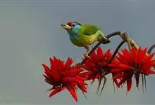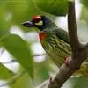 金喉拟啄木鸟,是须鴷科、拟啄木鸟属的鸟类。金喉拟啄木鸟为小型鸟类,体长19-24厘米。额深红色,头顶金黄色,后枕具一大块深红色斑,耳羽和头侧银灰色,上体草绿色,颏和上喉金黄色,下喉淡银灰色,…全部>>
