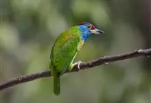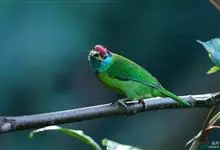 蓝喉拟啄木鸟,是须鴷科、拟啄木鸟属的鸟类。蓝喉拟啄木鸟为小型鸟类,体长20-23厘米。前额至头顶鲜红色,其上有一宽阔的黑色横带,将此红色分为前后二块;头侧、颏、喉蓝色,下喉两侧各具一红色点斑。…全部>>