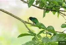 绿拟啄木鸟为鴷形目,须科,拟啄木属的一种。形较大拟啄木鸟略小,体长约260mm。头、颈及胸浅褐而具淡黄白色条纹;喉几为淡黄白色;身体余部草绿色。虹膜棕褐色,眼周裸露部黄色;嘴峰角黄色;跗跖和趾角黄…全部>>