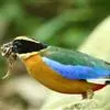 蓝翅八色鸫是雀形目八色鸫科的鸟类。体长17-20厘米,体重类约48-70克,体型圆胖,尾短,腿长,以身体具有红、绿、蓝、白、黑、黄、褐、栗等鲜艳夺目,丰富艳丽的色彩而得名,是很有观赏价值的鸟类。主要…全部>>